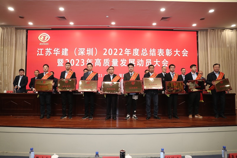 日月其迈,时盛岁新。2月18日下午,中共深圳市委党校第二报告厅乐曲激昂、气氛热烈。江苏华建深圳分公司2022年度总结表彰大会暨2023年高质量发展动员大会在这里隆重召开。各工程处党政工团负责人、受表彰的先进集体、先进个人代表及公司机关全体人员等240余人济济一堂,共同总结回顾2022年度公司发展业绩,共同畅想谋划新一年高质量发展大计。江苏省人民政府驻深圳(广州)办事处副主任、江苏省驻深单位党委书记蔡南太、江苏省驻深单位党委副书记方志成、江苏省住建厅驻南方办事处主任周广岭应邀出席会议,扬州建工控股集团、江苏华建董事长王宏出席会议并讲话。
