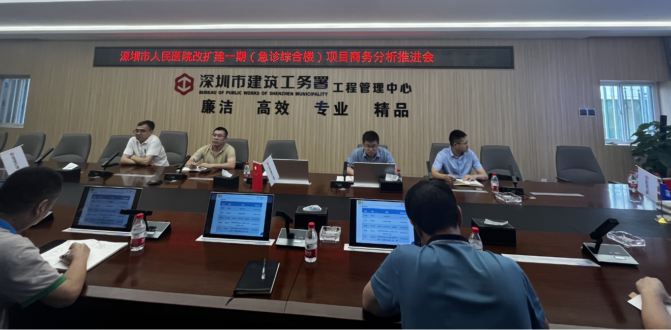 5月11日下午,公司在深圳市人民医院项目组织召开商务分析推进会,公司副总经理任斌,公司经营处及相关工程处商务人员、项目经理参加会议。